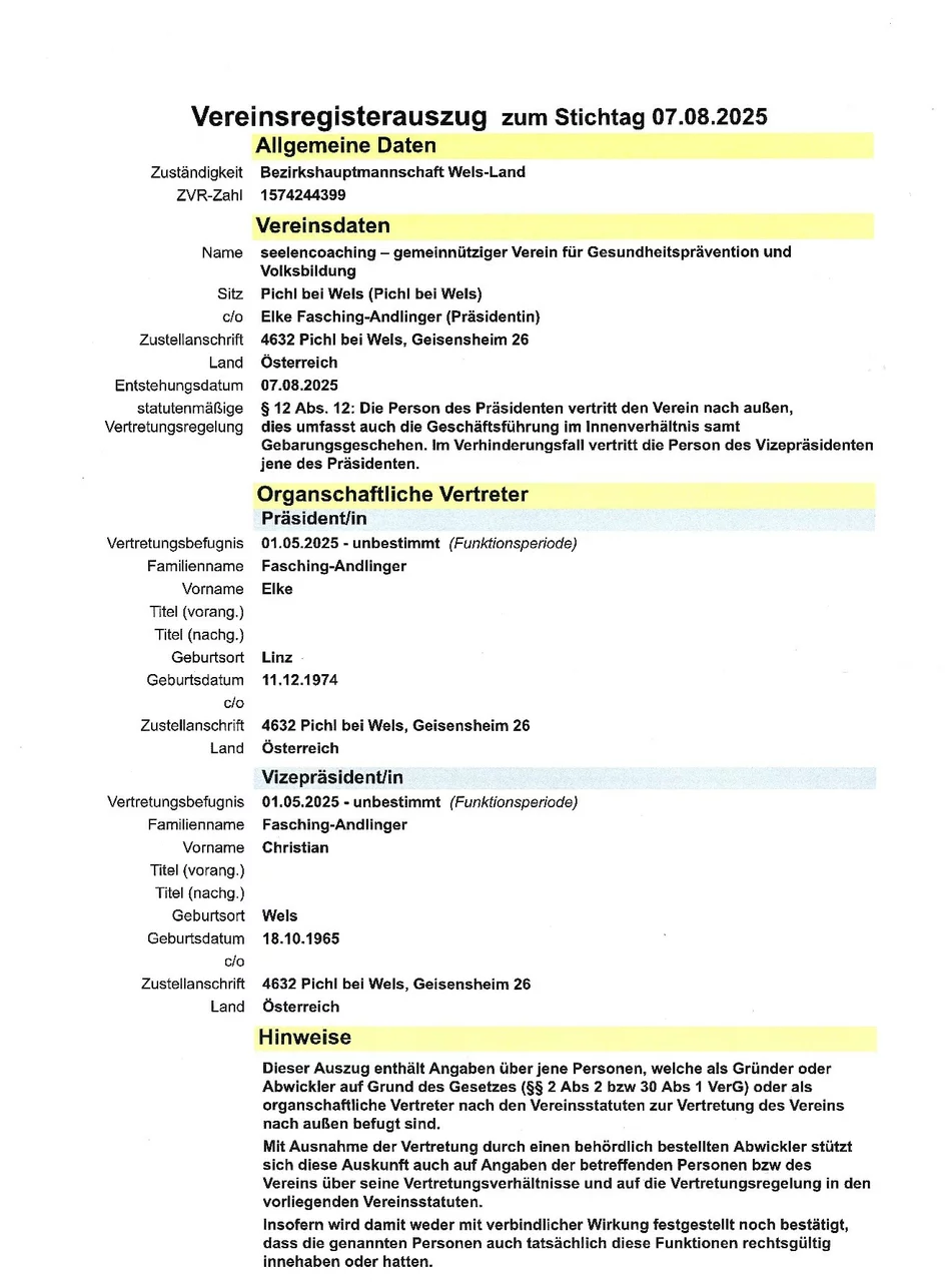 "seelencoaching – gemeinnütziger Verein für Gesundheitsprävention und Volksbildung",